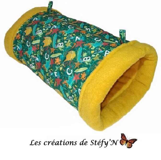 Manchon tunnel à poser par terre ou à accrocher dans la cage avec de la ouatine pour plus de confort.